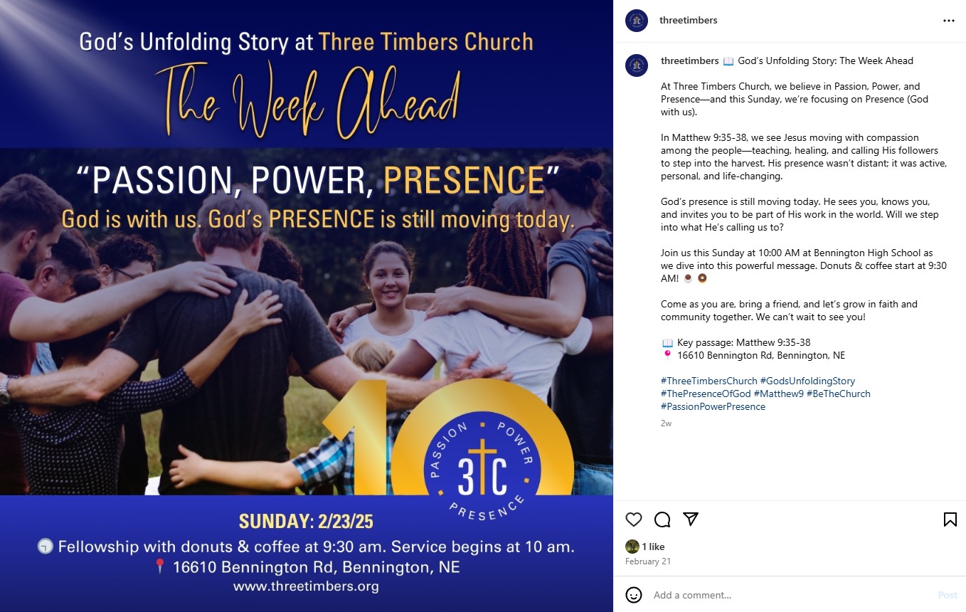 Social media is a powerful tool for connection, storytelling, and impact. For nonprofits, it creates opportunities to inspire, inform, and engage with a community that cares. Every post is a chance to share hope, spark action, and build meaningful relationships. These social media samples showcase my work in creating thoughtful, engaging content for organizations like Restored Wings and Three Timbers Church. Each post is designed with purpose—to uplift, educate, and bring people closer to a mission that matters.